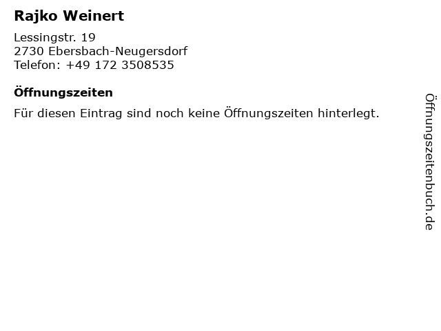 | Öffnungszeiten Rajko Weinert in Ebersbach-Neugersdorf anzeigen | |