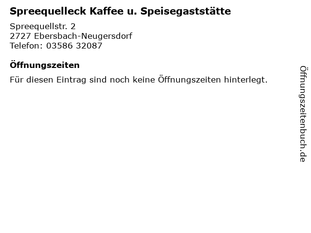 | Spreequelleck Kaffee u. Speisegaststätte anrufen | |