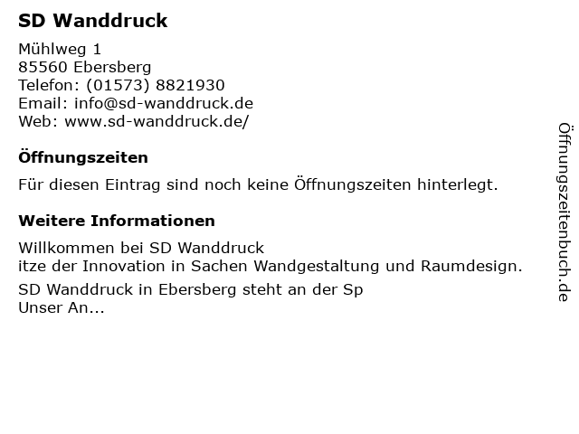 | Öffnungszeiten SD Wanddruck in Ebersberg anzeigen | |