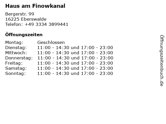 | Öffnungszeiten Haus am Finowkanal in Eberswalde anzeigen | |
