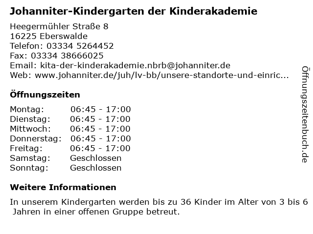 1 Kita & Hort der Kinderakademie in Eberswalde (Entfernung: 0,01 km) Heegermühler Straße 8, 16225 Eberswalde 4 Johanniter-Dienststelle Eberswalde: Pflege- und Notrufdienste (Entfernung: 0,94 km) Heegermühler Str. 64, 16225 Eberswalde 6 |