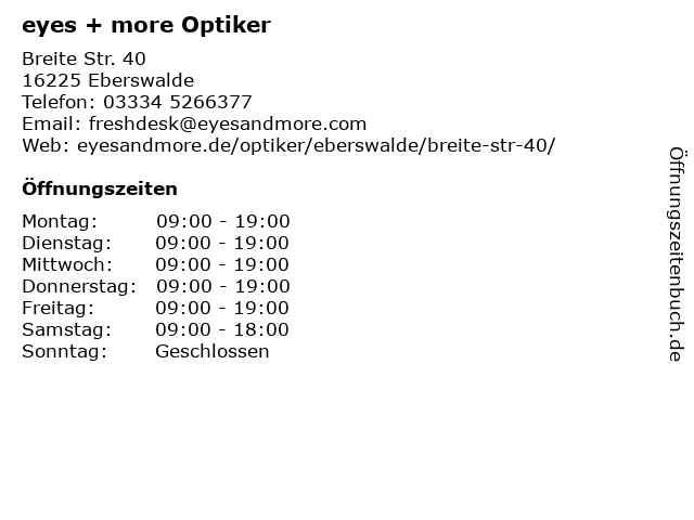 | Öffnungszeiten eyes + more Optiker in Eberswalde anzeigen | |
