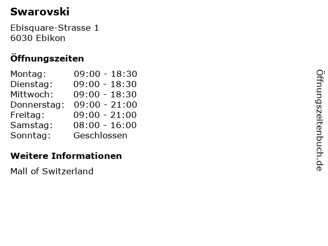 | Öffnungszeiten Swarovski in Ebikon anzeigen | |