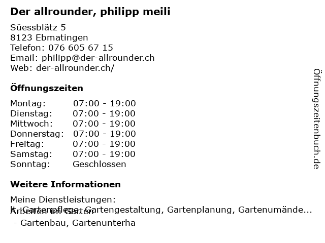 Branchen & Suchbegriffe zu Der allrounder, philipp meili:allrounder, bauberater, landschaftsgestalter, meili, philipp, umbauarbeiten |
