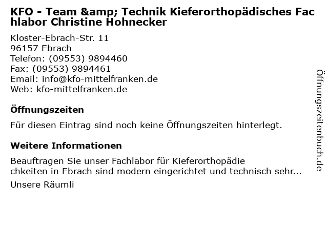 | KFO - Team & Technik Kieferorthopädisches Fachlabor Christine Hohnecker anrufen | |