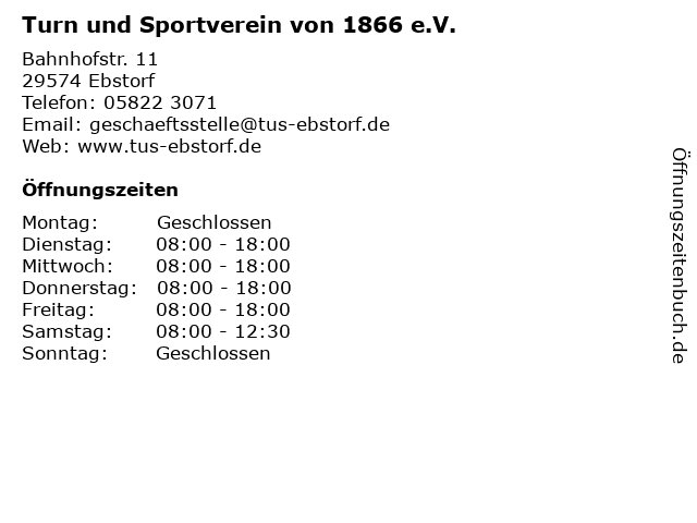 1 Männer-Turn-Verein Bad Bevensen von 1861 e.V. (Entfernung: 11,68 km) Kurze Bülten 1, 29549 Bad Bevensen 4 Sportverein MTV Embsen von 1919 e.V. - Geschäftsstelle (Entfernung: 16,99 km) Steinstr. 3, 21409 Embsen 6 |