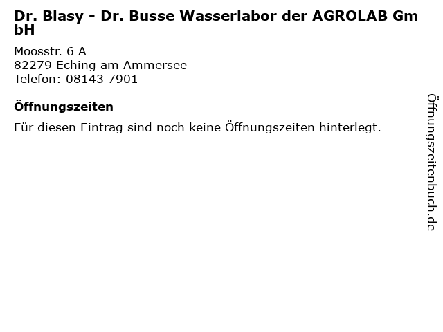 | Dr. Blasy - Dr. Busse Wasserlabor der AGROLAB GmbH anrufen | |