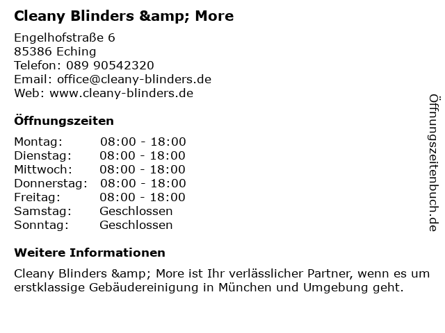 | Adresse Cleany Blinders & More in Eching anzeigen |