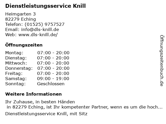 | Öffnungszeiten Dienstleistungsservice Knill in Eching anzeigen | |