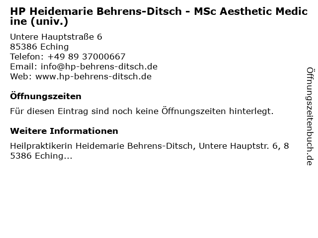 | HP Heidemarie Behrens-Ditsch - MSc Aesthetic Medicine (univ.) anrufen | |