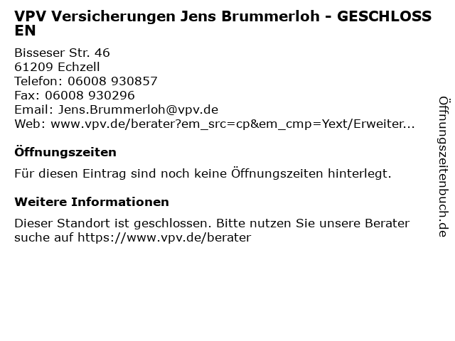 | VPV Versicherungen Jens Brummerloh - GESCHLOSSEN anrufen | |