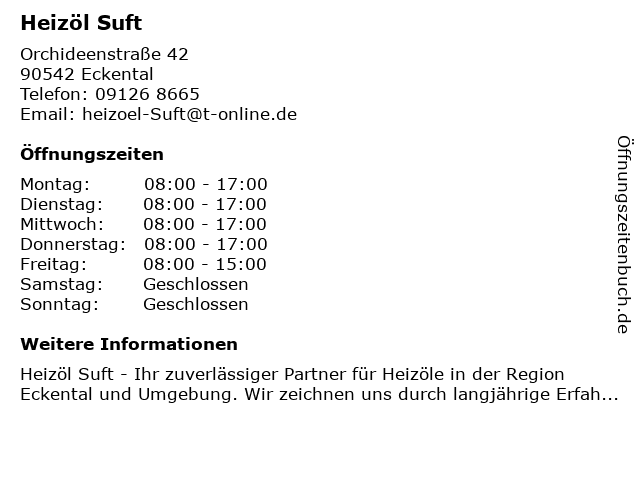 | Öffnungszeiten Heizöl Suft in Eckental anzeigen | |