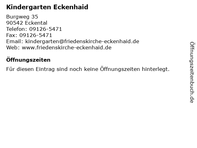 | Öffnungszeiten Kindergarten Eckenhaid in Eckental anzeigen | |
