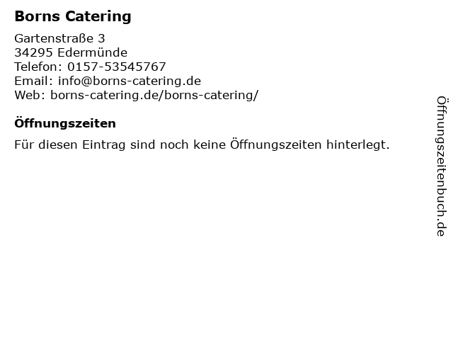 Öffnungszeiten Borns Catering in Edermünde anzeigen | |