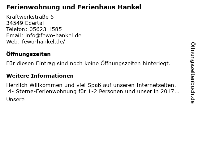 | Ferienwohnung und Ferienhaus Hankel anrufen | |