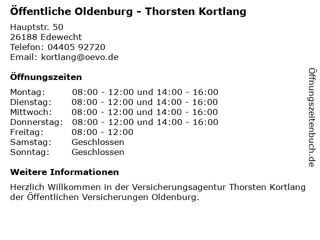 Öffnungszeiten Öffentliche Oldenburg - Thorsten Kortlang