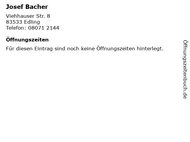 | Öffnungszeiten Josef Bacher in Edling anzeigen | |