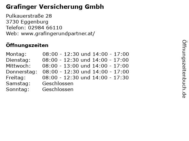 | Öffnungszeiten Grafinger Versicherung Gmbh in Eggenburg anzeigen | |