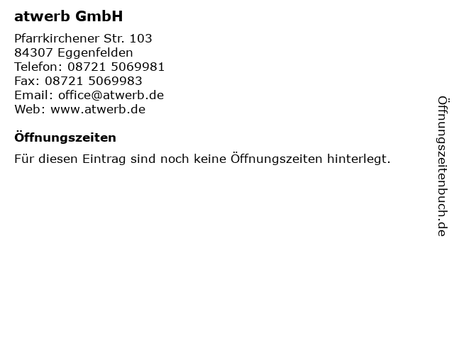 | Öffnungszeiten atwerb GmbH in Eggenfelden anzeigen | |