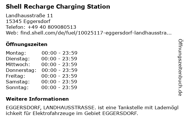 1 Shell Recharge Charging Station (Entfernung: 4,57 km) Mierwerder Weg 100, 15370 Petershagen-Eggersdorf 6 |