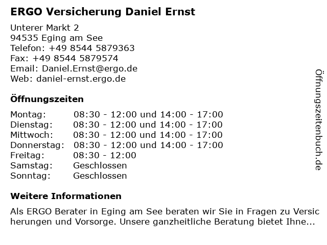 2 Daniel Ilg Elektroinstallation und Elektrohandel (Entfernung: 3,59 km) Peigertinger Str. 44, 94538 Fürstenstein 4 Allianz Versicherung Daniel Stadler Generalvertretung (Entfernung: 8,16 km) Herrenstraße 9 a, 94104 Tittling 6 |