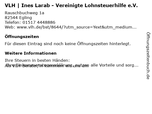 | VLH | Ines Larab - Vereinigte Lohnsteuerhilfe e.V. anrufen | |
