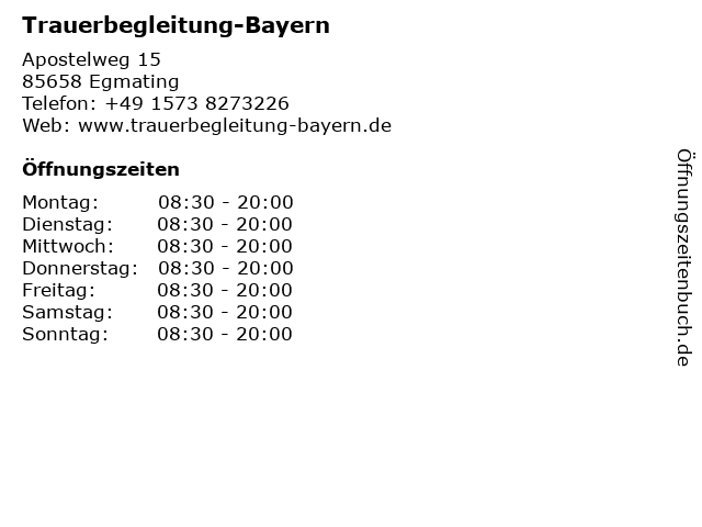 | Öffnungszeiten Trauerbegleitung-Bayern in Egmating anzeigen | |