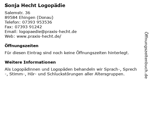 Branchen & Suchbegriffe zu Sonja Hecht Logopädie:hecht, logopädie, sonja |