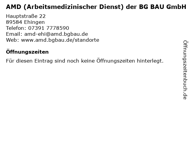 | AMD (Arbeitsmedizinischer Dienst) der BG BAU GmbH anrufen | |