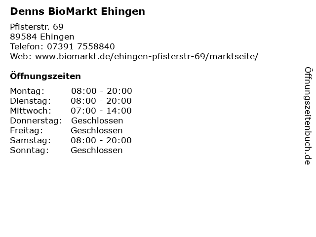 | Öffnungszeiten Denns BioMarkt Ehingen in Ehingen anzeigen | |
