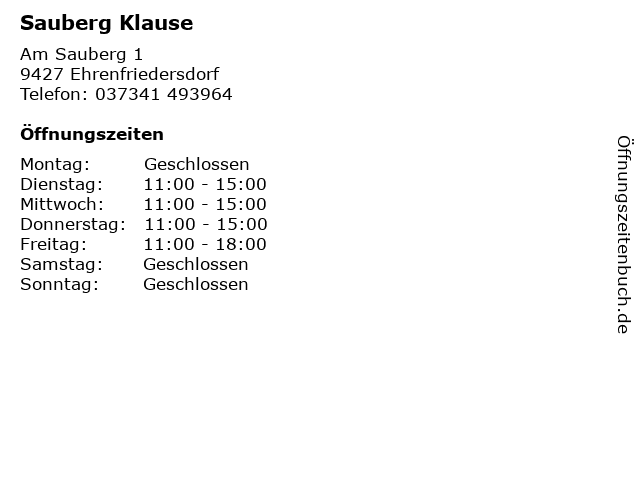 Sauberg Klause in Ehrenfriedersdorf: Telefonnummer, Öffnungszeiten und Adresse