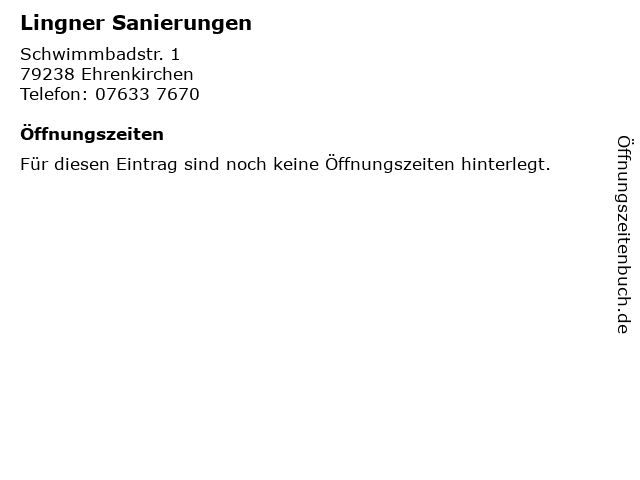 | Öffnungszeiten Lingner Sanierungen in Ehrenkirchen anzeigen | |