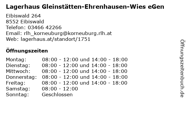 6 Lagerhaus Gleinstätten-Ehrenhausen-Wies eGen - alle Abteilungen (Entfernung: 0,53 km) Eibiswald 264, 8552 Eibiswald |