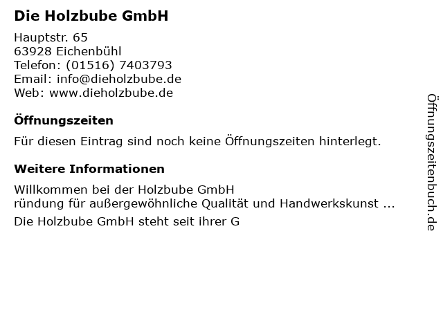 | Öffnungszeiten Die Holzbube GmbH in Eichenbühl anzeigen | |
