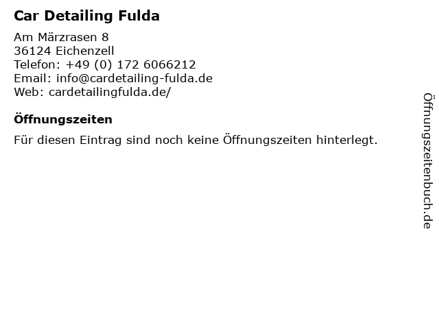 | Telefonnummer Car Detailing Fulda in Eichenzell (+49 (0) 172 6066212) anrufen | |