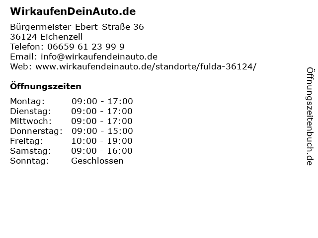 | Öffnungszeiten WirkaufenDeinAuto.de in Eichenzell anzeigen | |