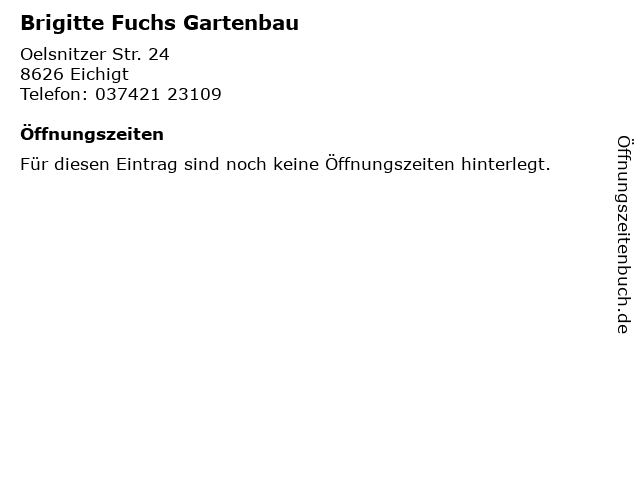 | Öffnungszeiten Brigitte Fuchs Gartenbau in Eichigt anzeigen | |