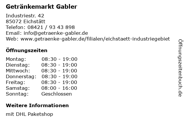 | Öffnungszeiten Getränkemarkt Gabler in Eichstätt anzeigen | |