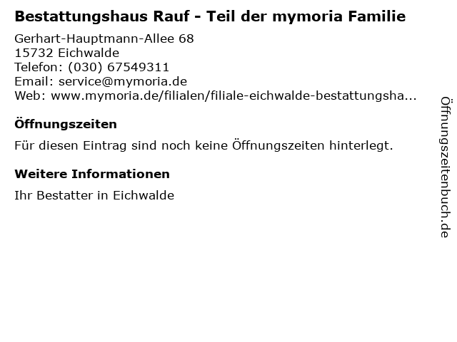 | Bestattungshaus Rauf - Teil der mymoria Familie anrufen | |