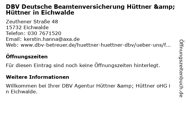 DBV Deutsche Beamtenversicherung Hüttner & Hüttner in Eichwalde anrufen | |