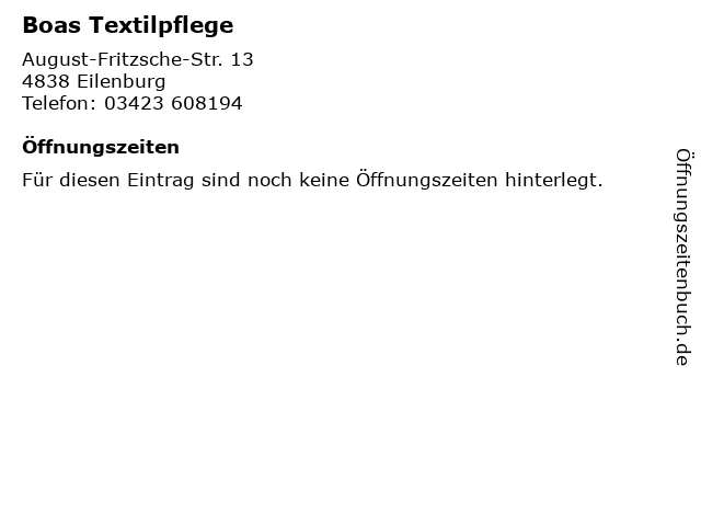 | Öffnungszeiten Boas Textilpflege in Eilenburg anzeigen | |