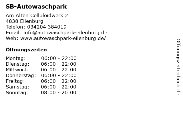 | Öffnungszeiten SB-Autowaschpark in Eilenburg anzeigen | |
