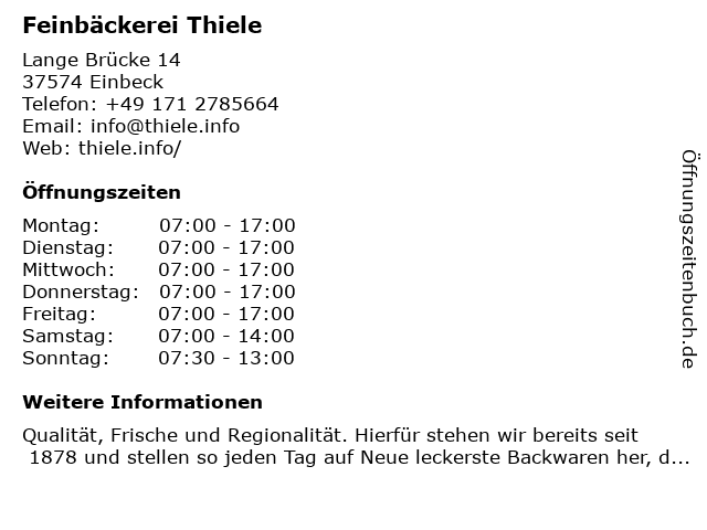 | Öffnungszeiten Feinbäckerei Thiele in Einbeck anzeigen | |