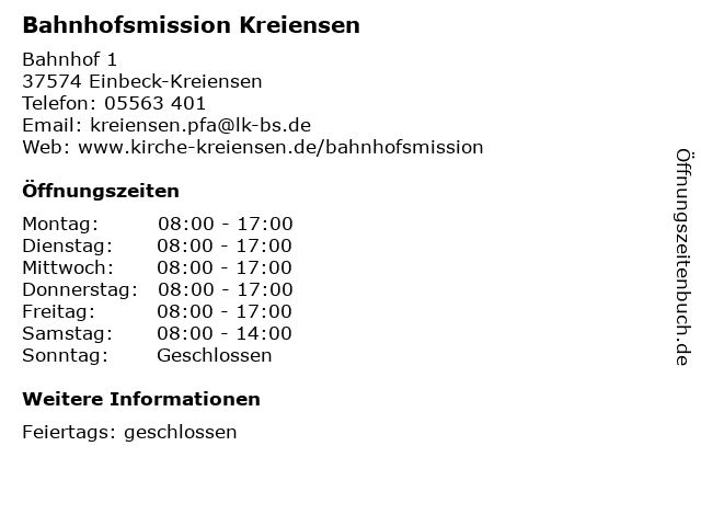 Branchen & Suchbegriffe zu Bahnhofsmission Kreiensen:bahnhofsmission, begleitung, betreuung, hilfe, kreiensen, unterstützung, vermittlung |