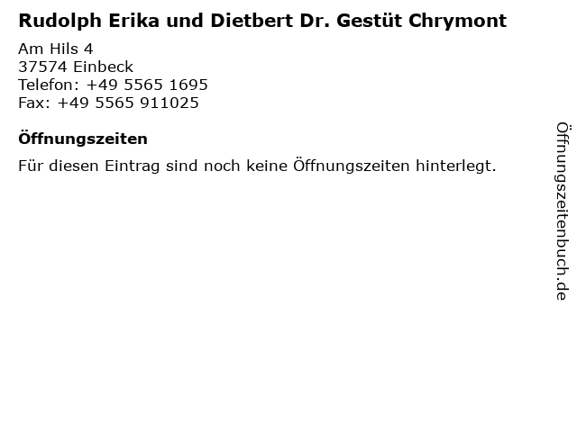 | Rudolph Erika und Dietbert Dr. Gestüt Chrymont anrufen | |