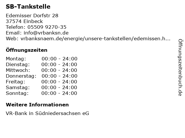 | Öffnungszeiten SB-Tankstelle in Einbeck anzeigen | |