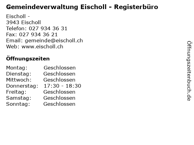 Branchen & Suchbegriffe zu Gemeindeverwaltung Eischoll - Registerbüro:amt, bürgerhaus, eischoll, email:, gemeinde, gemeinde@eischoll.ch, gemeindeamt, gemeindehaus, gemeindekanzlei, gemeindeschreiberei, gemeindeverwaltung, kanzlei, rathaus, registerbüro |