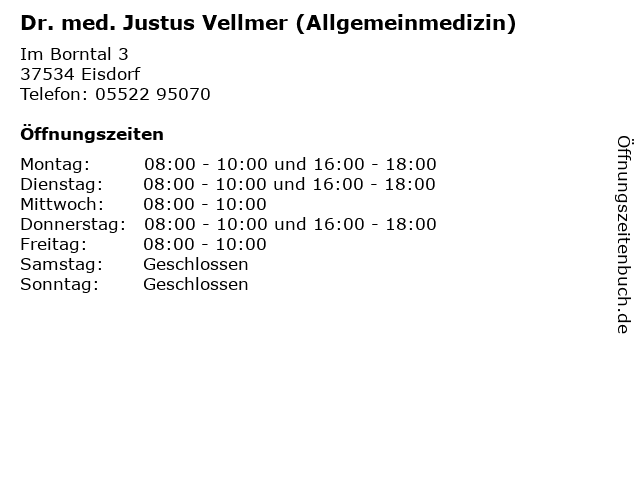 Branchen & Suchbegriffe zu Dr. med. Justus Vellmer (Allgemeinmedizin):allgemeinmedizin, arzt, behandlung, dr., justus, med., medizin, sprechzeiten, vellmer |