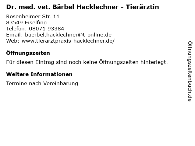 | Dr. med. vet. Bärbel Hacklechner - Tierärztin anrufen | |