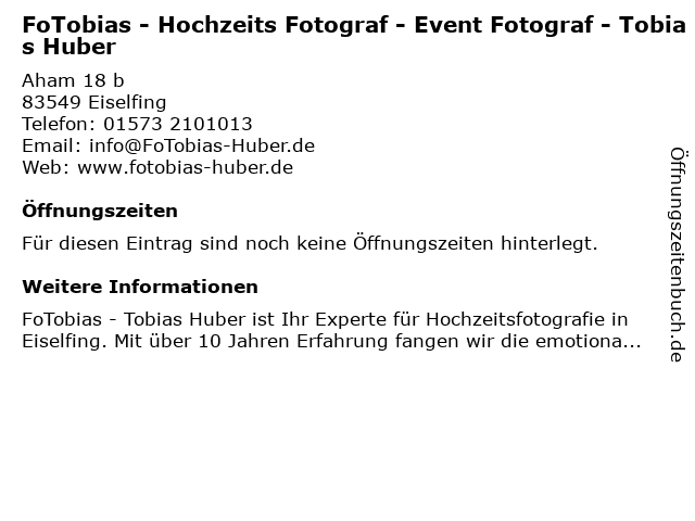 | FoTobias - Hochzeits Fotograf - Event Fotograf - Tobias Huber anrufen | |